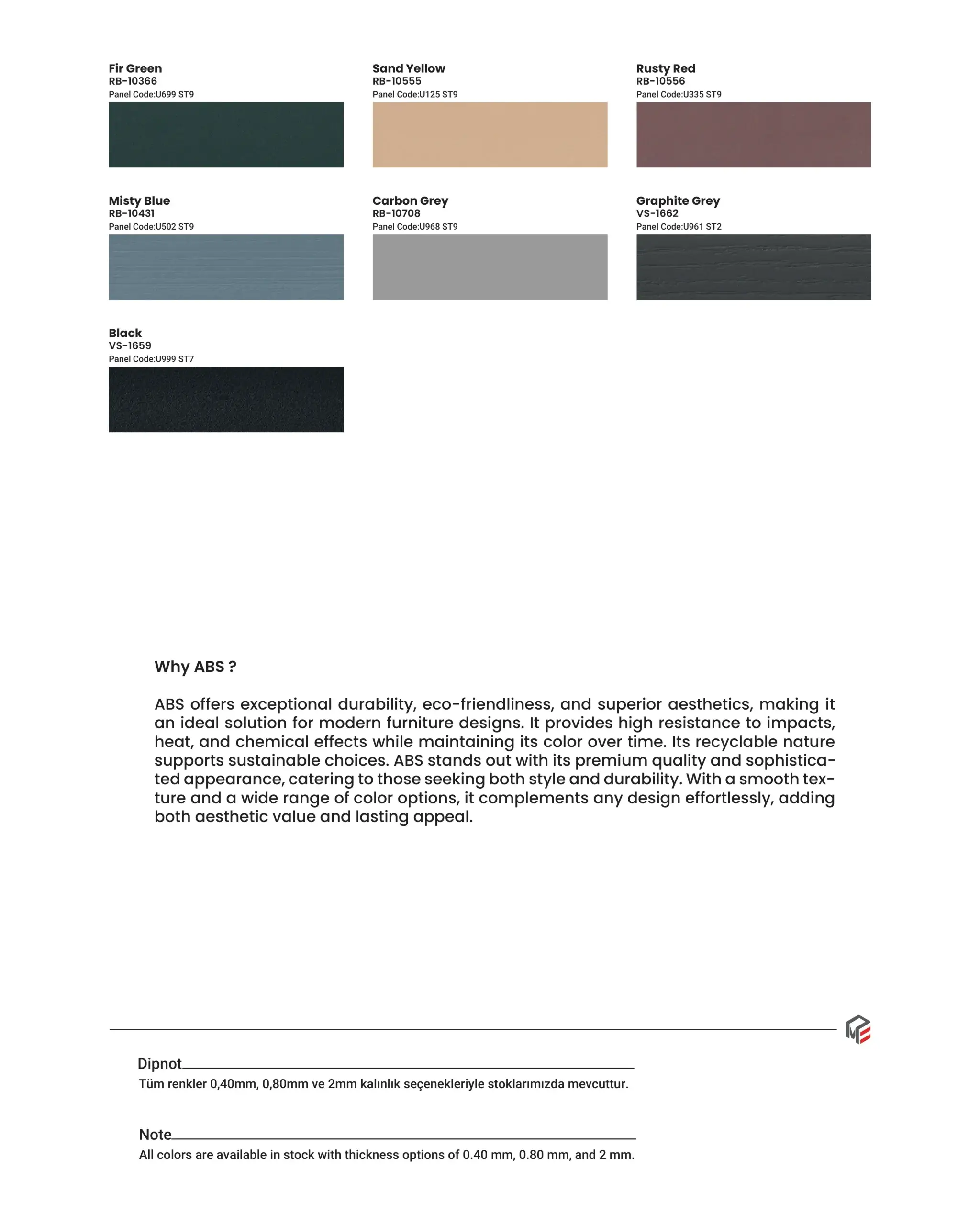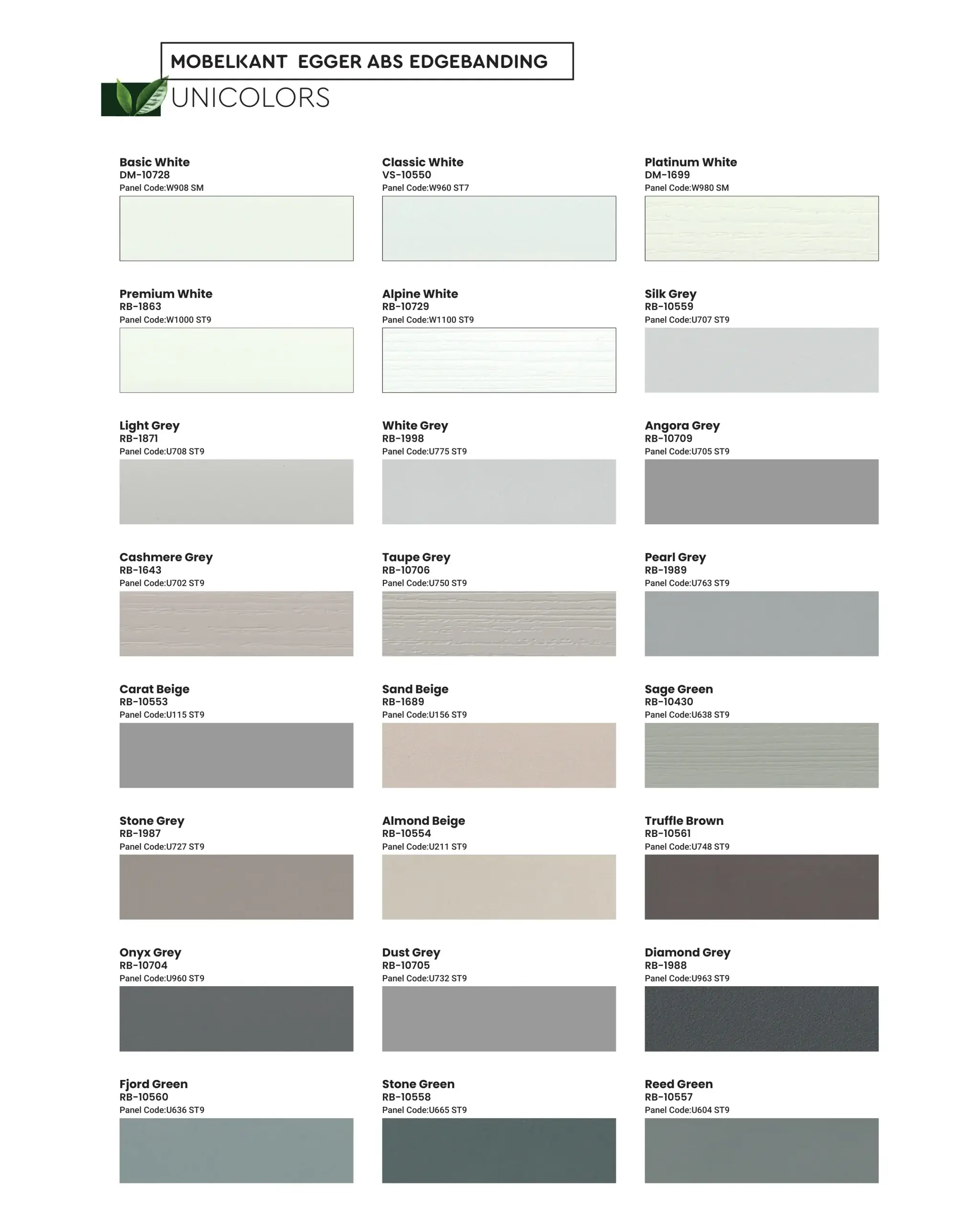 Egger’in en popüler ve yaygın kullanılan yaklaşık 100 rengini, 0.40 mm, 0.80 mm ve 2.00 mm kalınlık seçenekleriyle stoklarımızda bulunduruyoruz.
