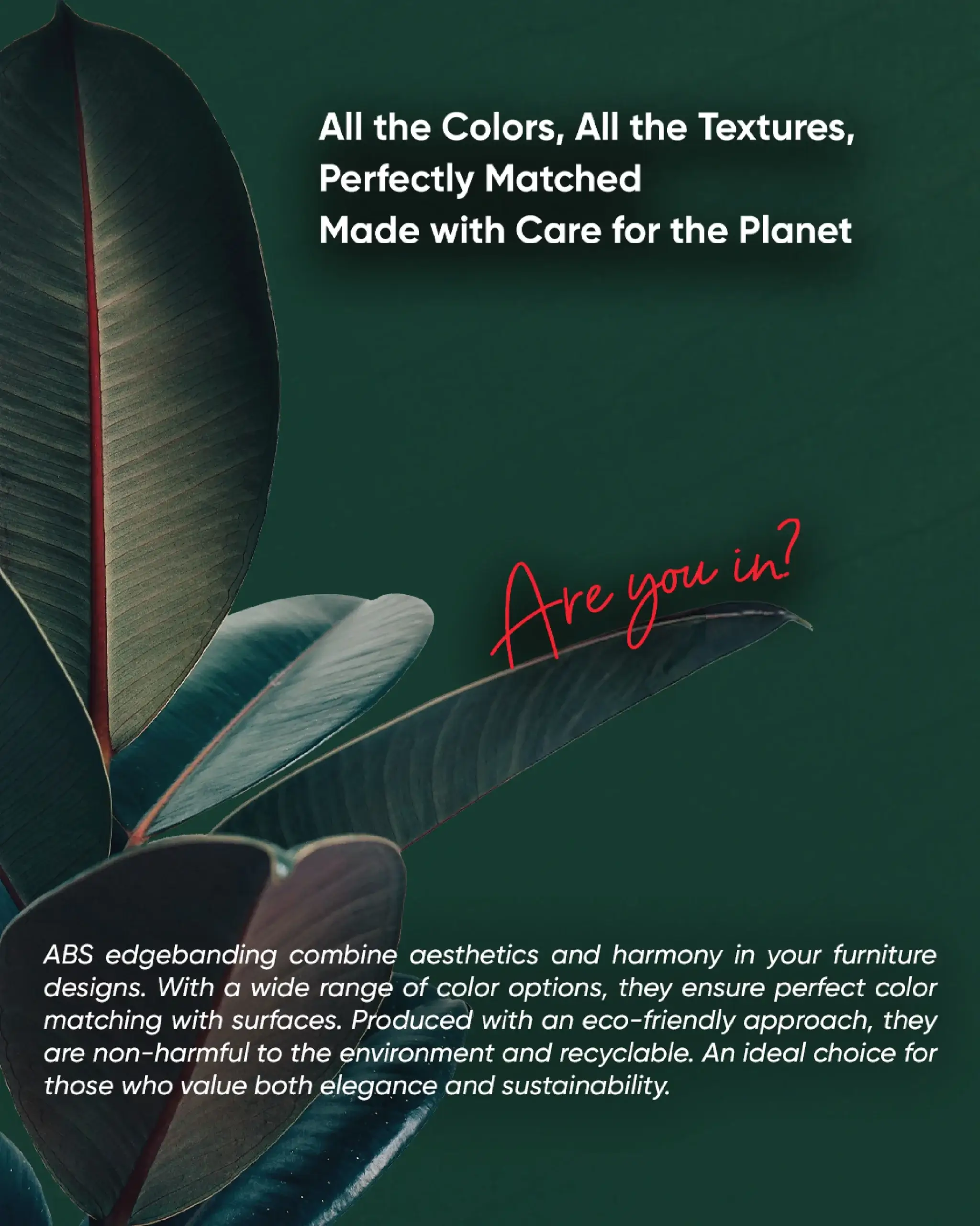 Dünyanın önde gelen ahşap bazlı levha üreticisi Egger’in renkleriyle birebir uyumlu kenar bantlarını stoklarımıza ekledik.